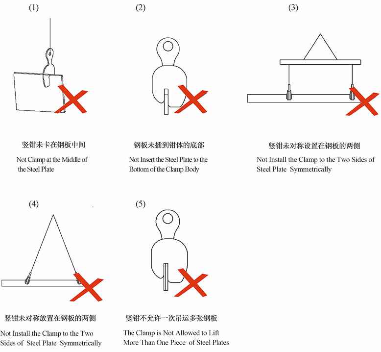 2.根据钢板的重量和厚度选择合适的竖钳,严禁超载使用。