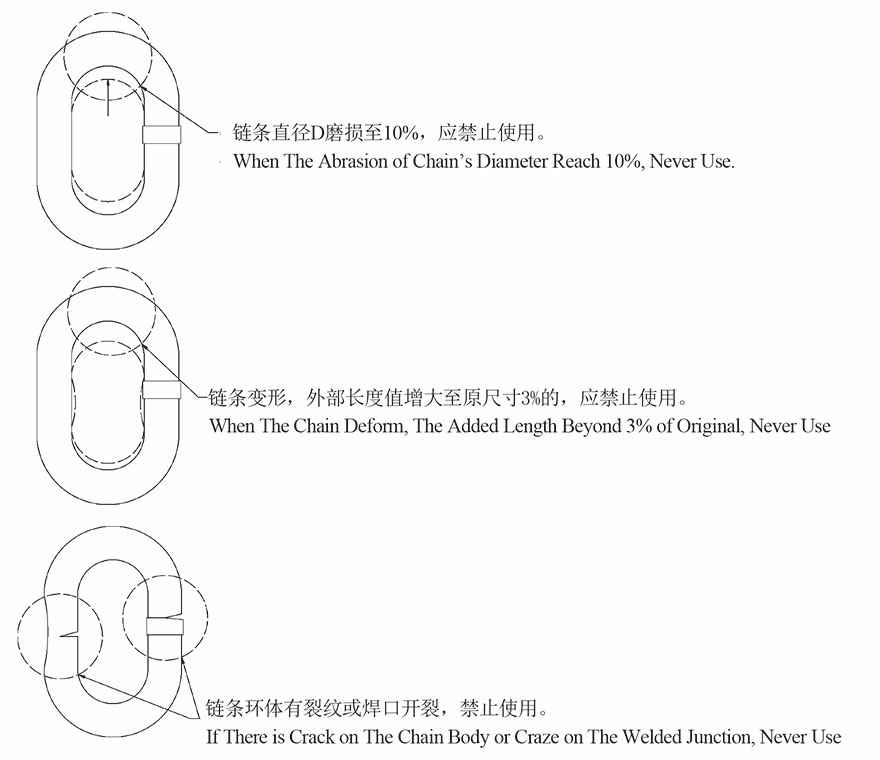 链条发生下列任何一种情况,应禁止使用。