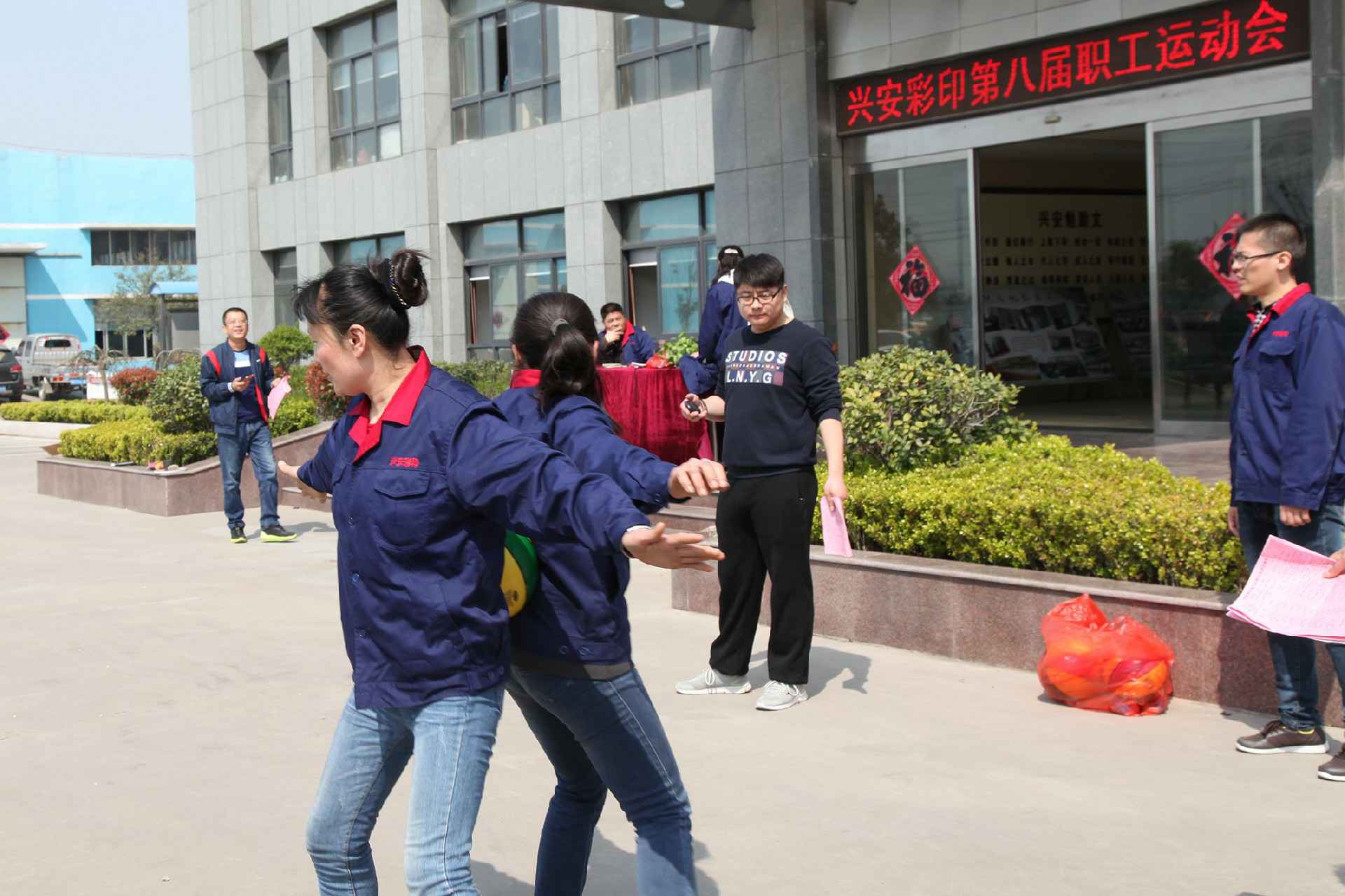 2017年4月2日上午,武汉赖俊职业素养提升有限公司第八届职工运动会隆重举行,本次运动会共设男女拔河、盲人敲锣、投沙包、抛绣球、心有灵犀、心心相印、摸石过河、穿衣接力、同舟共济、企鹅漫步、仙人指路、踢毽子、踢气球、羽毛球、面部肌肉跳舞及“造反”运动等16大项,参赛人员400多人次,此次运动会以娱乐节目为主开的比较成功,充分体现了兴安大家庭的和谐团结。